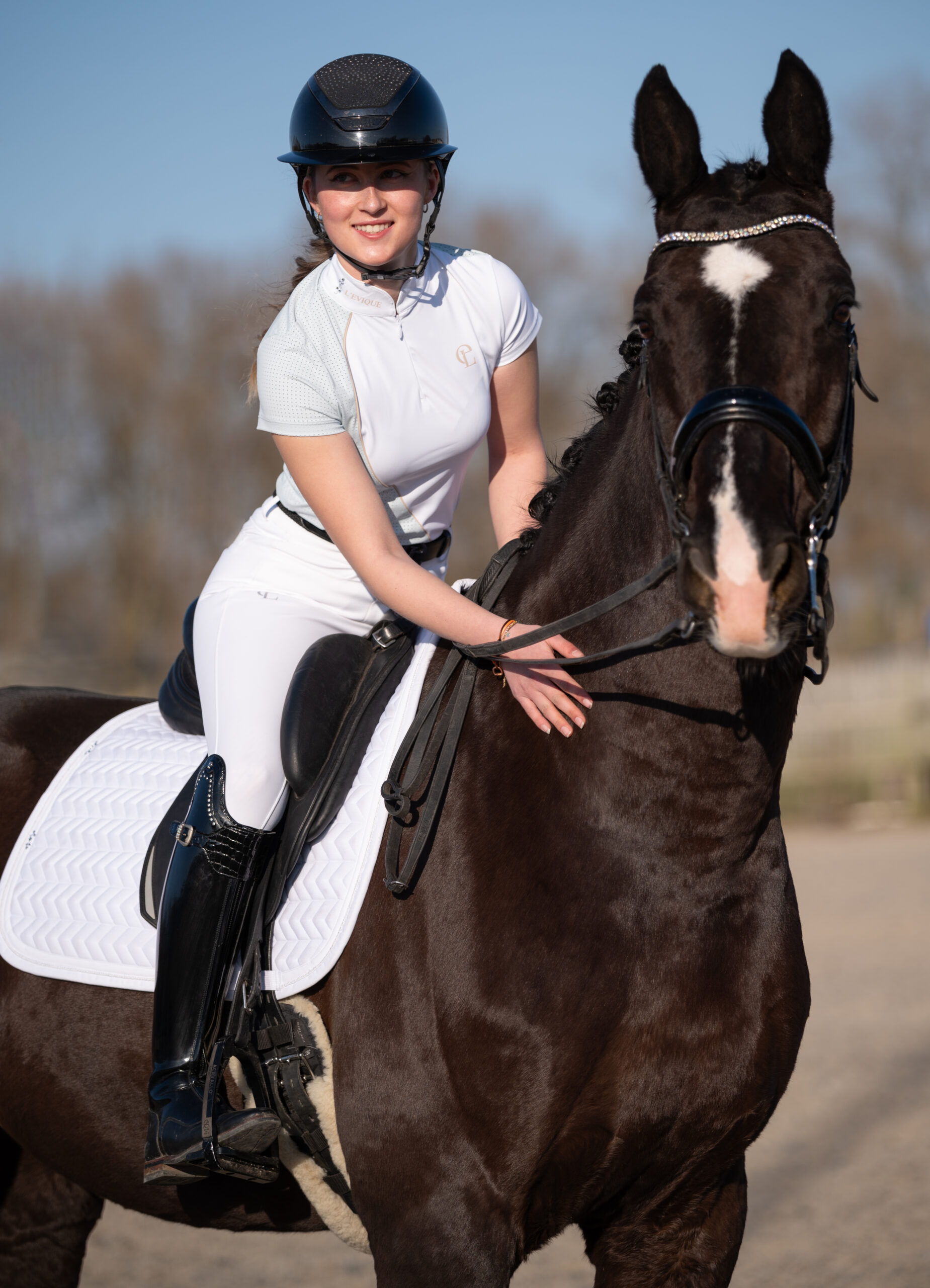 Onze ruiterkleding ademt elegantie en klasse. En dat smelt verfijnd samen met gepast comfort én functionaliteit. Onze rijbroeken perfectioneren je silhouet dankzij het compressie-effect. De geraffineerde shirts voelen aan als een tweede huid dankzij de ademende stof. En onze exquise zadeldekjes zijn de perfecte accessoire voor je paard. De ultieme fit voor een ontspannen training, een mooie buitenrit én om te stralen in de ring. Embrace your elegance & never saddle for less!