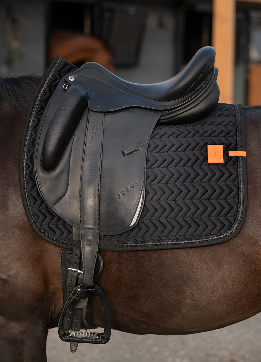 Dressuur zadeldek gemaakt van velvet material voor een luxe uitstraling.